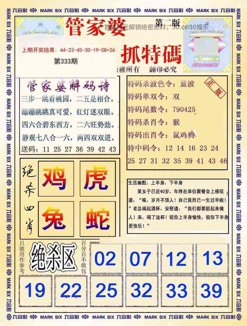 338期:特肖前后/特码在其中/干掉四分一/庄家绝吃码/一肖中特平