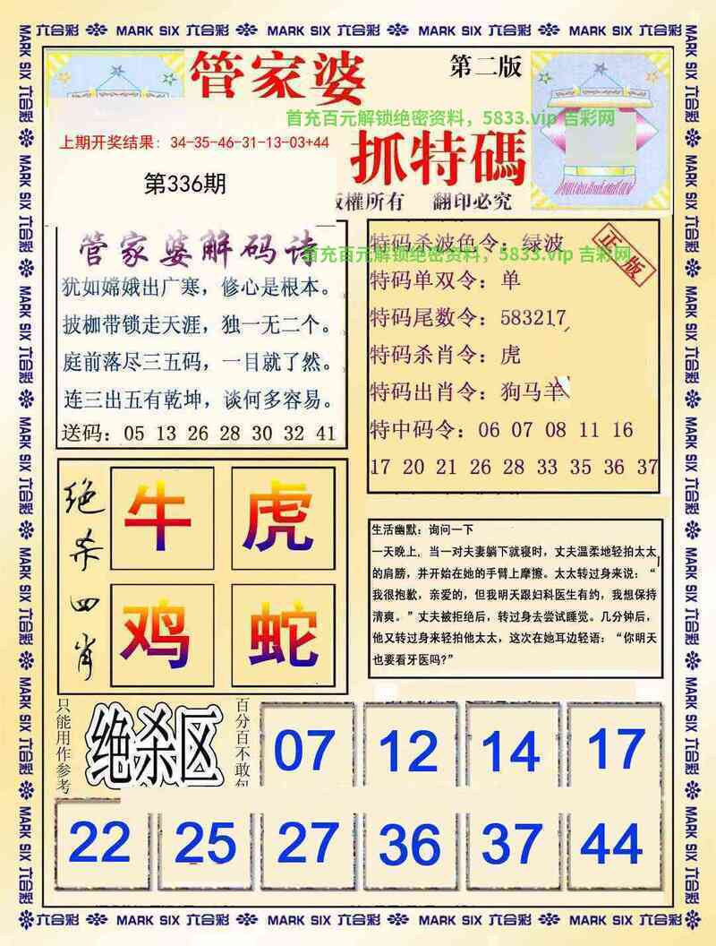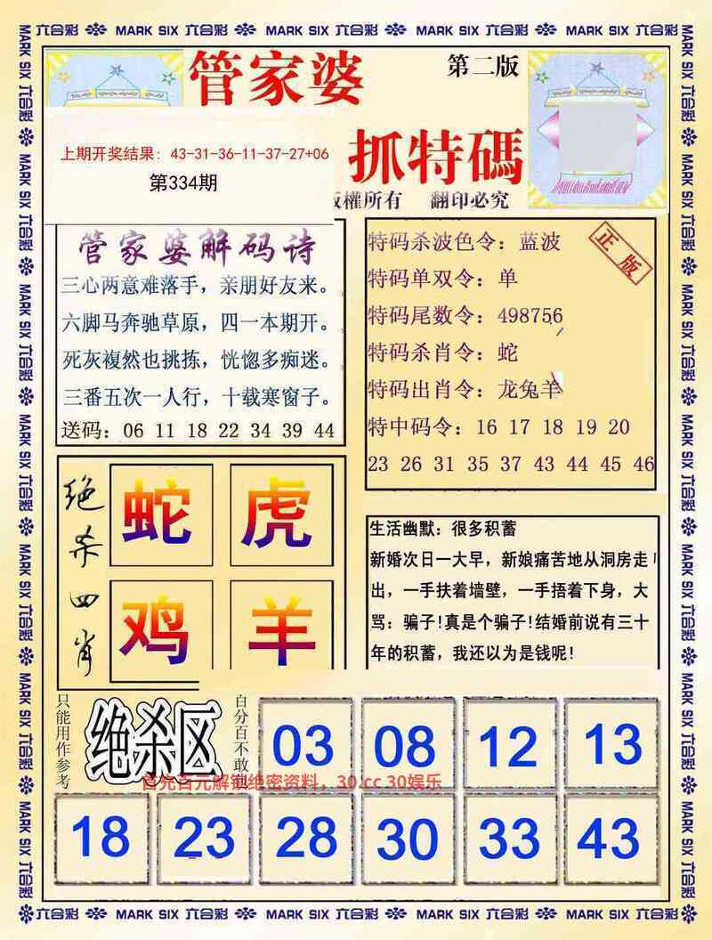 338期:特码暗语/曾道人救世心经/攻特料/六合心经/平码生肖点将